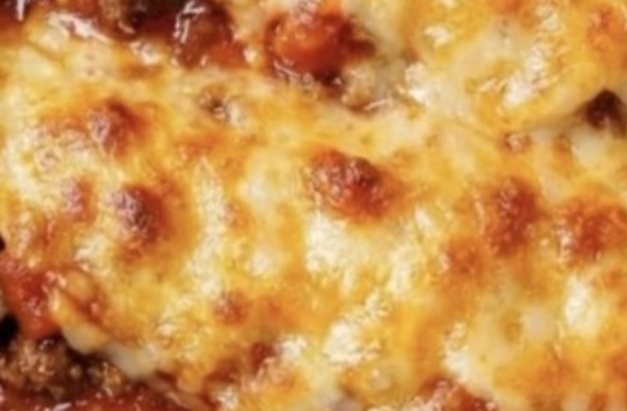Repeat layers until everything is used, finishing with sauce and cheese on top.