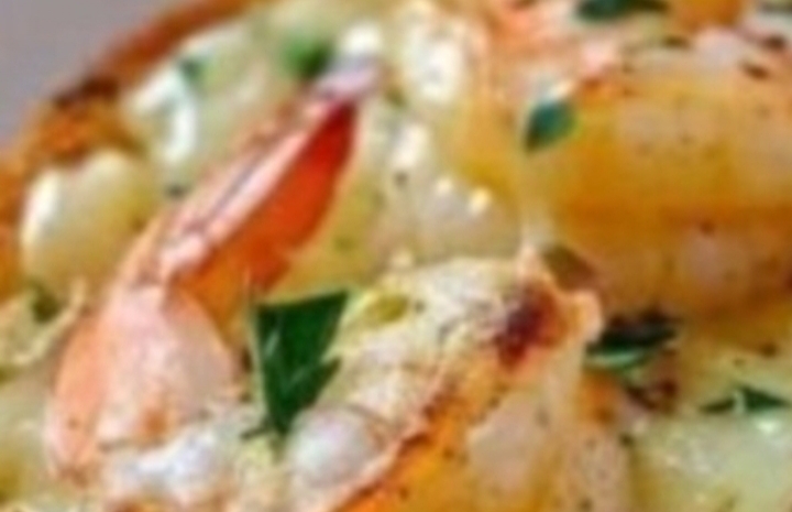 On one half of the garlic bread, layer the cooked shrimp and sprinkle with Monterey Jack cheese.