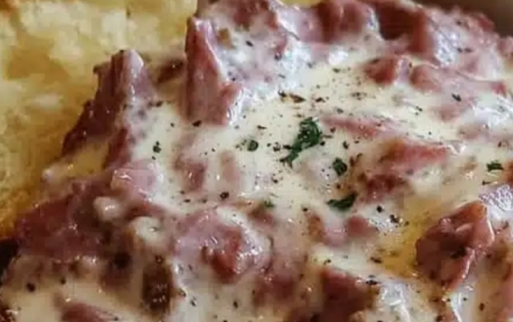 3. Taste and adjust salt only if needed — the dried beef is salty on its own, so be cautious.