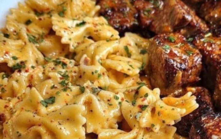 Indulge in a rich and flavorful dish featuring tender chicken cooked in a luscious creamy garlic butter sauce, paired with perfectly cooked linguine in a velvety Alfredo sauce. This dish brings together the perfect balance of savory flavors and creamy textures, making it an ideal comfort meal for any occasion.