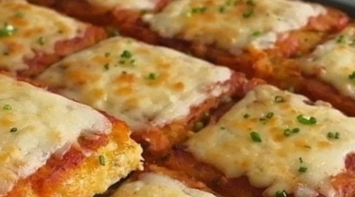 After baking, brush tomato sauce over the surface, cut into square portions, and sprinkle with shredded cheese (mozzarella or Parmesan). Return to the oven for 10 minutes to melt the cheese.