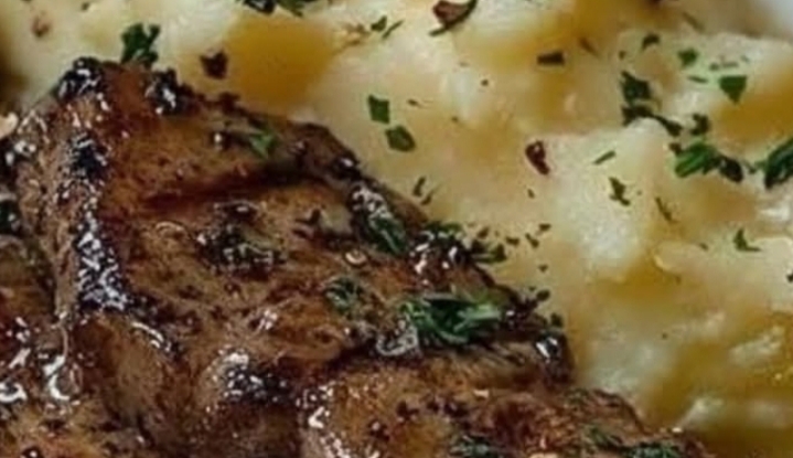 Plate the creamy mashed potatoes and top with garlic butter steak bites.