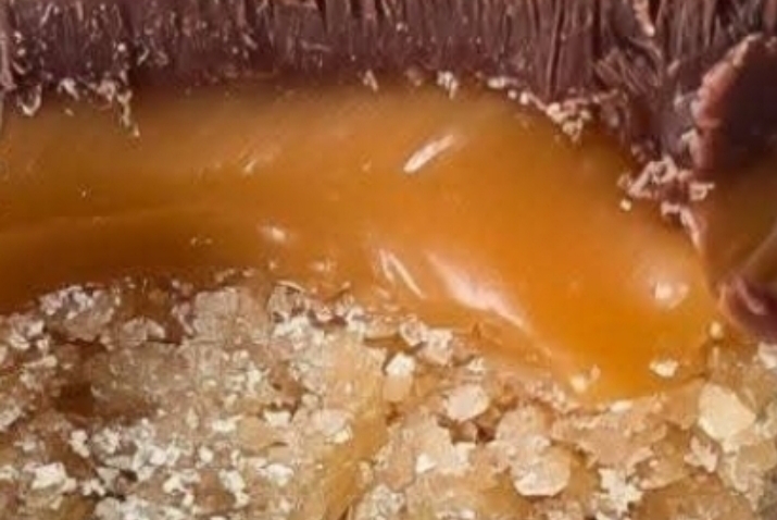 Spread the peanut butter and caramel mixture over the chocolate layer.