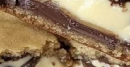 Pour the remaining melted chocolate over the peanut butter layer and spread evenly.