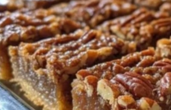 - Pour Filling: Pour the pecan filling over the pie crust in the baking pan, spreading it evenly.