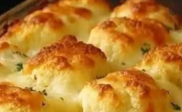 Pour the beaten eggs over the cauliflower, making sure it covers everything evenly.