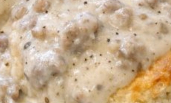 If you’d like to dress this up a little without losing its simple charm, there are plenty of options. For a richer biscuit, brush the tops with a bit of melted butter just before or right after baking. If you prefer a lighter gravy, use part milk and part water, the way many farm kitchens did when stretching the morning’s milk. A pinch of crushed red pepper or extra black pepper in the sausage as it cooks gives the gravy a gentle kick, while a small handful of shredded cheese stirred into the finished gravy makes it extra cozy on cold mornings. You can also swap in turkey sausage or a leaner blend if that’s what you keep on hand; just add a spoonful of butter or oil if the pan looks too dry before adding the flour. For smaller households, bake half the biscuits and freeze the shaped, unbaked rest—then you can pull a few from the freezer and bake them straight from frozen on another morning, adding a couple of extra minutes to the baking time. And if you ever find yourself with leftover gravy, it’s lovely spooned over fried potatoes or a slice of toast the next day, a quiet reminder of yesterday’s breakfast lingering into today.