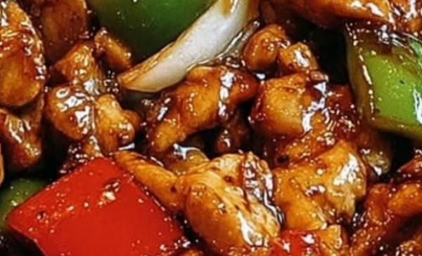 Return the cooked chicken to the wok and toss everything together. Simmer for 2–3 minutes until the sauce thickens and coats the chicken and vegetables evenly.
