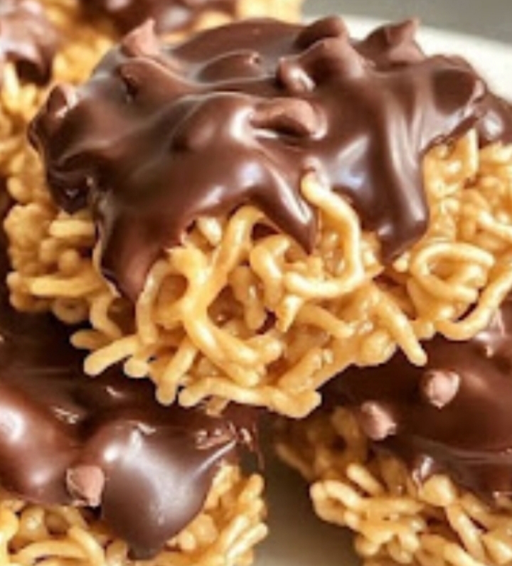 Add the chow mein noodles and salted peanuts to the melted mixture, stirring until everything is well coated.