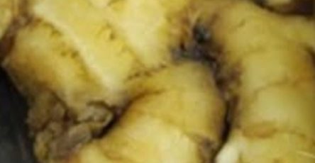 In a pot, add water, ginger, garlic, onion, and baking soda.